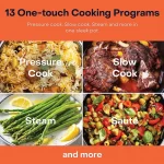 برنامه های پیش فرض : ( Soup , Meat , Chicken , Cake , Slow Cook , Rice , Biryani , Oats , Yogurt , Steam , Saute , Pressure Cook , Delay , Keep Warm) / ( سوپ , گوشت , مرغ , کیک , آرام پز , برنج , بریانی , جو دوسر , ماست , بخارپز , تفت دادن , زودپز , پخت با تاخیر , گرم نگه دارنده ) / دارای برنامه Delay پخت با تاخیر